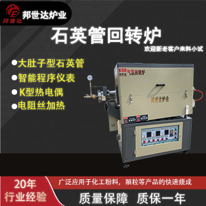 (2)爐膽采用石英材質(zhì),爐膽為大肚子形,大肚子型可以使物料固定在恒溫區(qū)內(nèi)旋轉(zhuǎn)燒結(jié),不會使物料跑到低溫區(qū)內(nèi)。